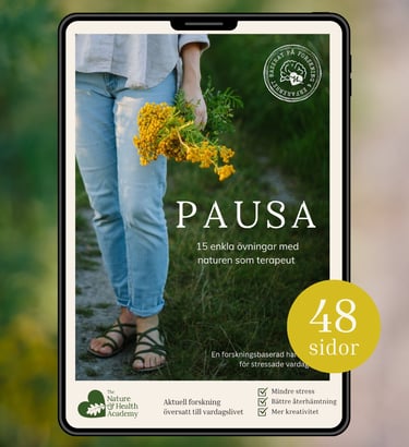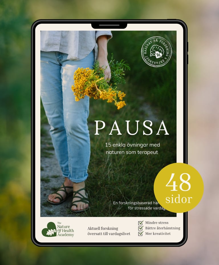 Boken är skapad av Hanna Post, forskningskommunikatör och certifierad skogsbadsguide. Efter sju år med forskning om natur och hälsa vid SLU har hon samlat de mest relevanta forskningsresultaten och omvandlat dem till enkla, konkreta övningar som faktiskt fungerar i vardagen. Läs mer om Hanna och The Nature & Health Academy.